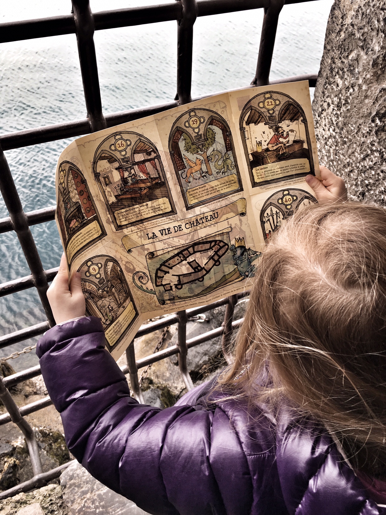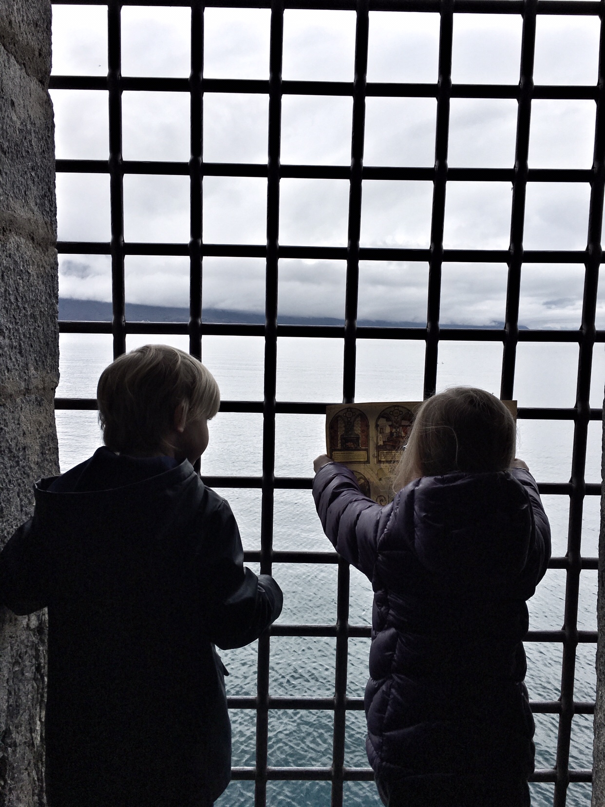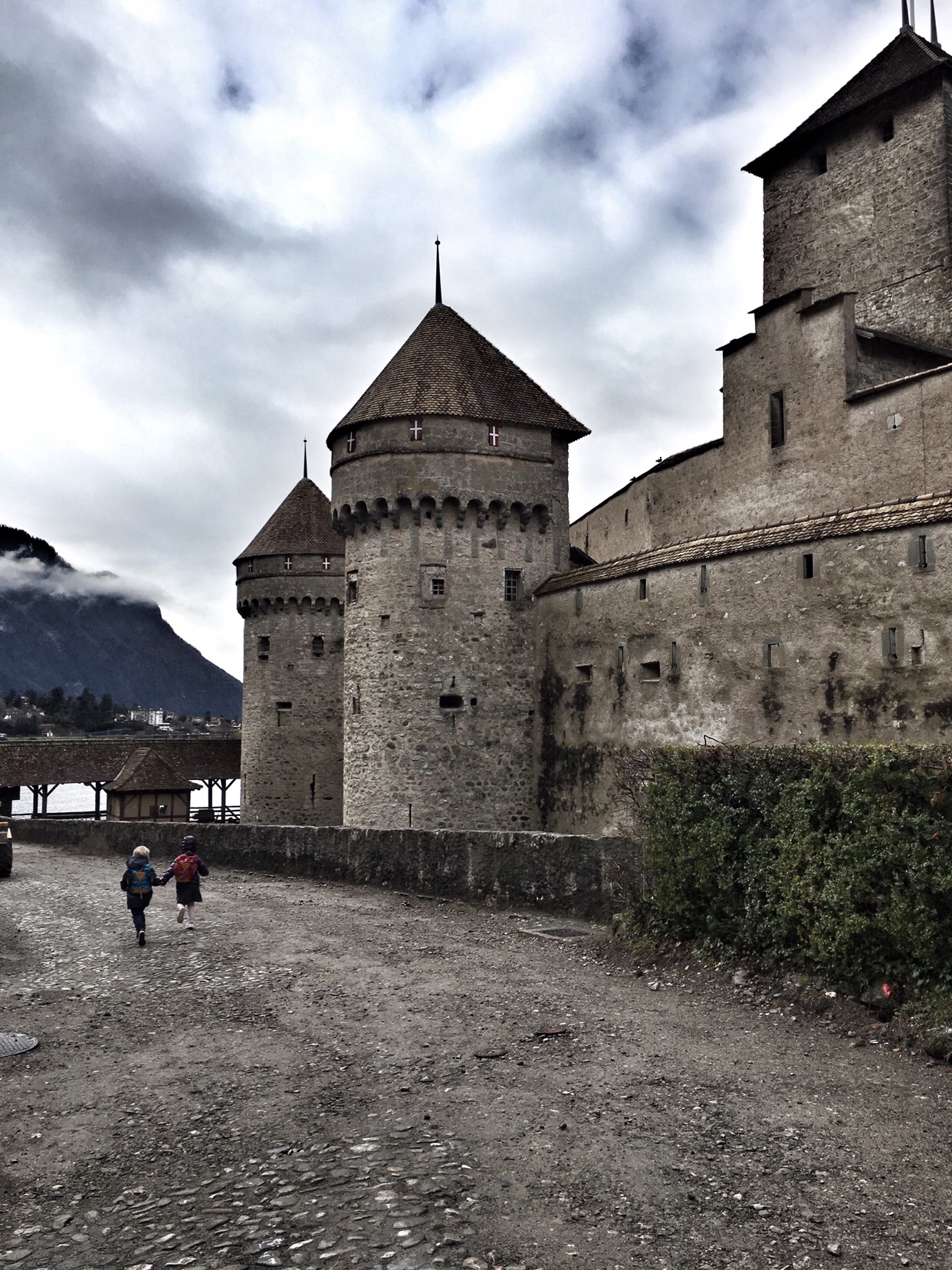 Pendant les vacances de Pâques, j’ai profité d’une journée au temps maussade pour emmener les deux ainés au Château de Chillon, entre Montreux et Vevey. La simple évocation du mot château (et d’une journée entre « grands »!) a suscité de la joie et de l’impatience chez les loustics, qui imaginaient déjà croiser chevaliers, princesses et dragons au détour de notre visite…