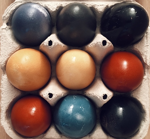 C’est déjà Pâques, et cette année nous avons fait trois teintures naturelles pour nos œufs durs. Il s’agit d’utiliser des ingrédients tous simples, pas besoin de faire beaucoup d’achats. Je vous donne donc ici mes petites recettes pour amener un peu de couleur dans votre chasse aux oeufs!
