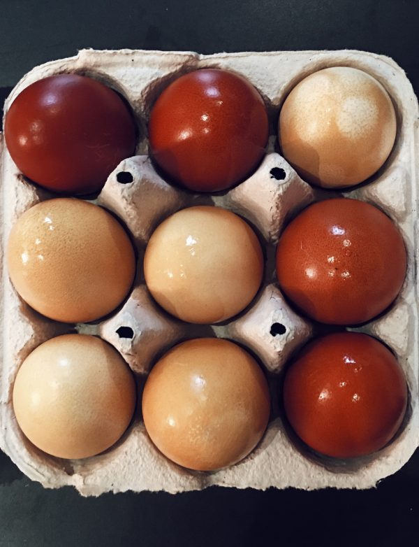 Les œufs prendront une jolie teinte rapidement, et vous pouvez les sortir au bout d’une heure déjà. Mais nous nous sommes amusés à les laisser un peu plus longtemps et à les extraire de leur bain progressivement. Certains sont donc même restés toute la nuit et sont bien foncés.